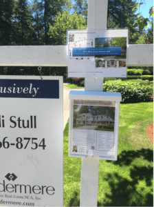 There are also other creative ways to leverage the content we create for you. One of our customers in the Seattle area is not only leveraging the Call2Action photo on Zillow, but she is putting it right on the yard sign. She printed it out, laminated it, and stapled it to the sign, as you see here. A great idea! Saves paper, gives the browsers a link to the tour via the link or QR code, and teases them to go see more, including videos, floor plans and of course the 3D Designer.