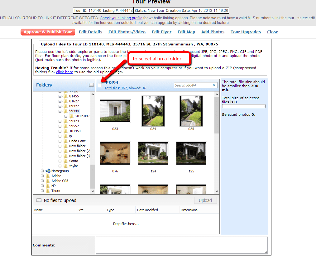 So…we added a new Flash uploader that uses Adobe’s Flash tools to upload photos. It works pretty good, you just do not see your file structure initially. You need to click the button to +Add More Files, navigate to where you have the photos stored on your computer, and then you can use the SHIFT key (start at the first photo and then hold the key down, and click on the last photo to select all photos in that folder) or the CTRL key (hold the CTRL key and then just click photos you want to upload to highlight them) to select various photos. You will then see them added into the upload window. Then just upload.